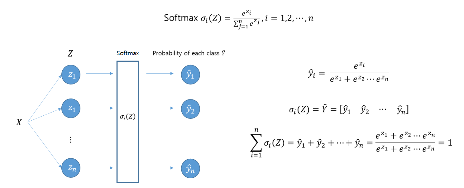 식을 살펴보면 클래스별 확률을 모두 더한 값이 1이 된다.