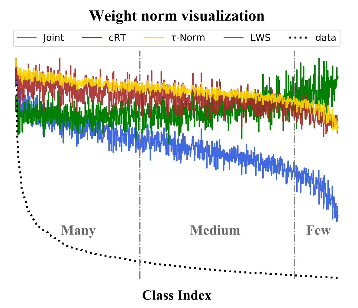 - 헤드 클래스의 웨이트 놈이 클수록 해당 클래스가 차지하는 특징 공간(feature space)의 크기가 커지고 테일 클래스들은 충분한 특징 공간을 확보하지 못하게 됩니다. 이는 테일 클래스 샘플에 대한 예측 정확도 감소로 이어집니다.