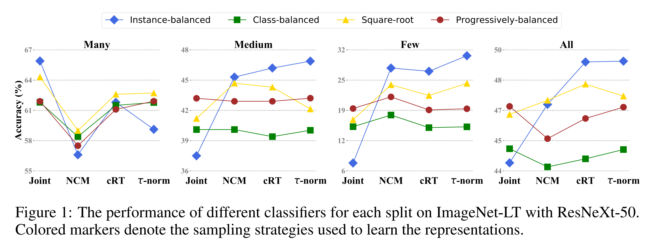 이 논문은 이 점에 주목하여 두 파트에서 각각 어떠한 샘플링 전략을 선택하여 훈련하였을 때 롱테일 상황에서 최고의 성능을 내는지를 비교합니다.