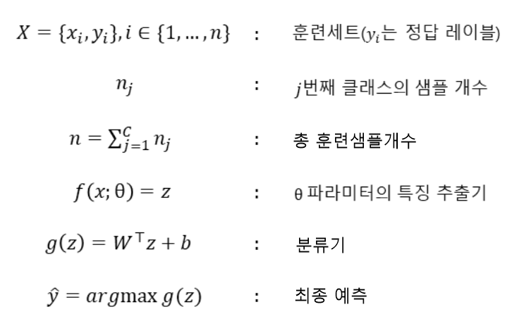 W와 b는 각각 분류기의 웨이트와 바이어스를 뜻합니다.