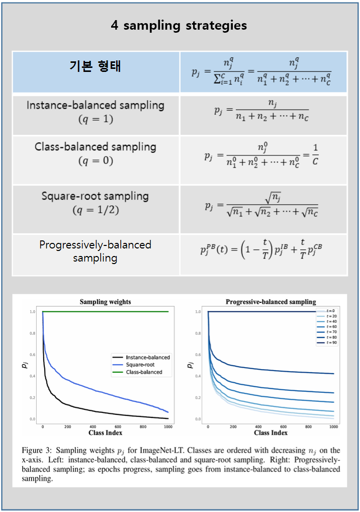 - Instance-balanced sampling : 각 클래스의 샘플들이 배치에 뽑힐 확률이 샘플 분포와 같습니다.