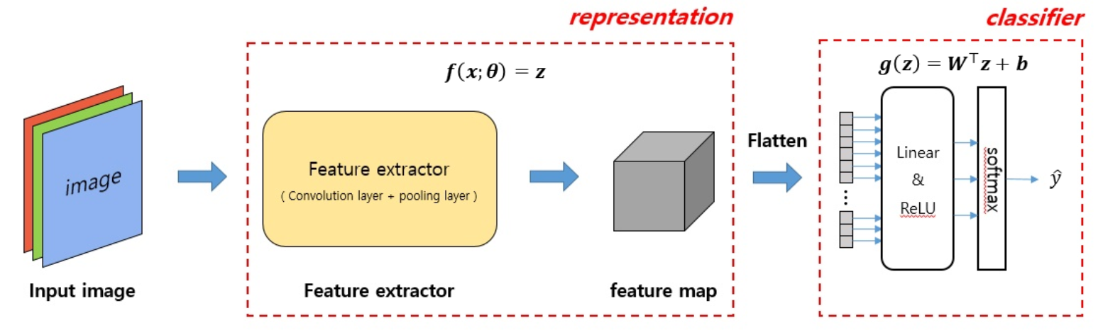 CNN분류기는 크게 특징 추출기(representation)와 분류기(classifier)로 나눌 수 있습니다.