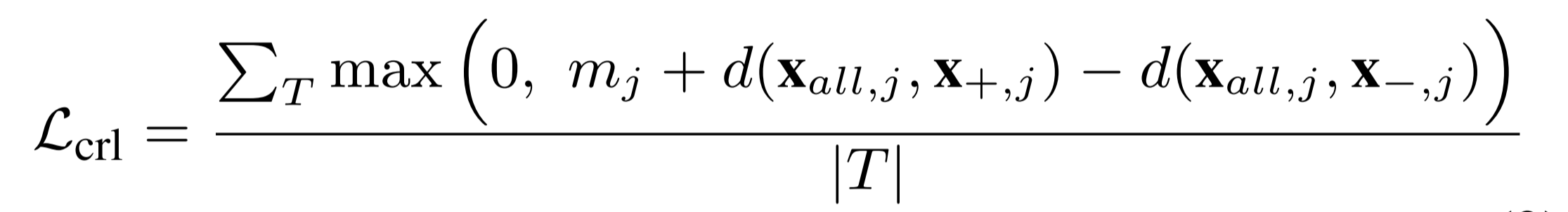 이를 사용하여 triplet pairs 에 대하여 합한 값을 평균내준 함수가 CRL loss입니다. 음수값이 나올 수 있어 0과 해당값 중에 max를 취한값을 최종 반환합니다.
