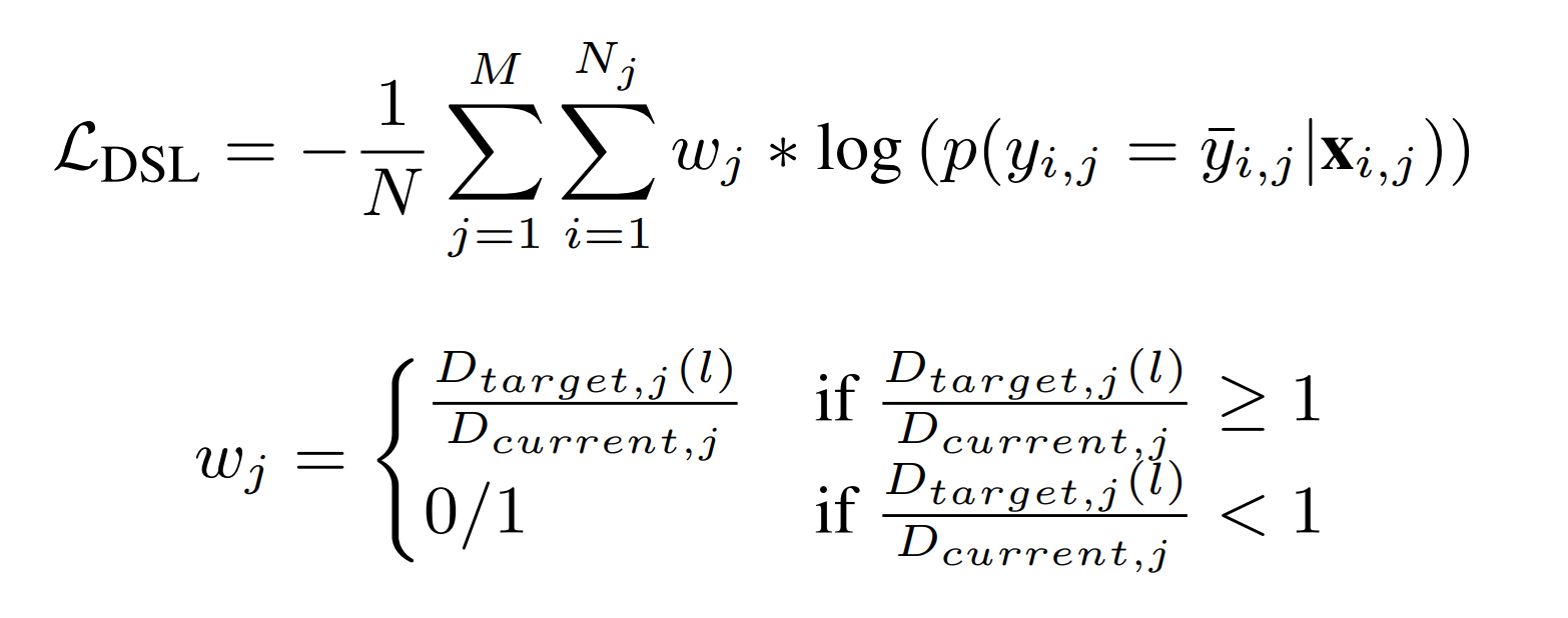 D_target,j(l) < D_current,j 일때 웨이트가 0이 되어 손실함수에 반영이 되지 않습니다.