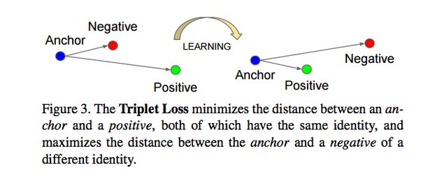 앵커와 negative sample 사이의 유클리디안 거리를 벌리고, positive sample사이의 거리는 좁히는 알고리즘입니다.