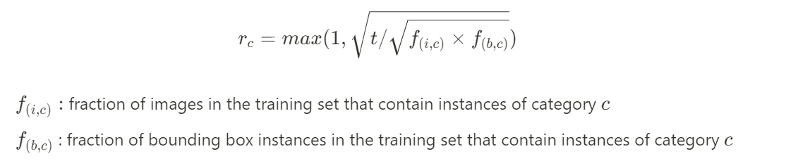그렇게 하여 생긴 이미지 내에서의 r_c들 중 해당 이미지 내에서 가장 큰 값(이미지 내 가장 적은 class)을 반환하여 이미지의 repeat factor로 사용합니다.