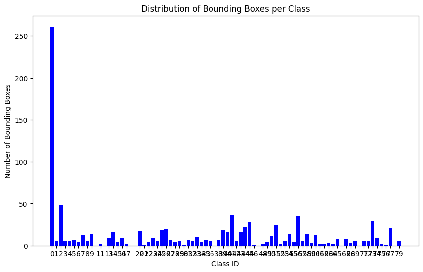 # 클래스별 바운딩 박스 개수 및 총 바운딩 박스 개수 계산