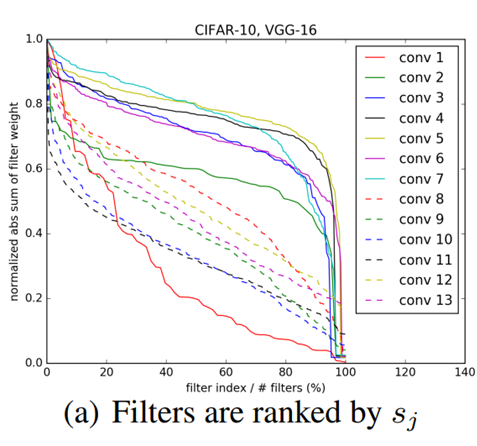 컨볼루션 레이어의 필터들 중 가장 영향력이 적은 필터를 지우는 것이 성능 감소를 최소화 할 수 있습니다.