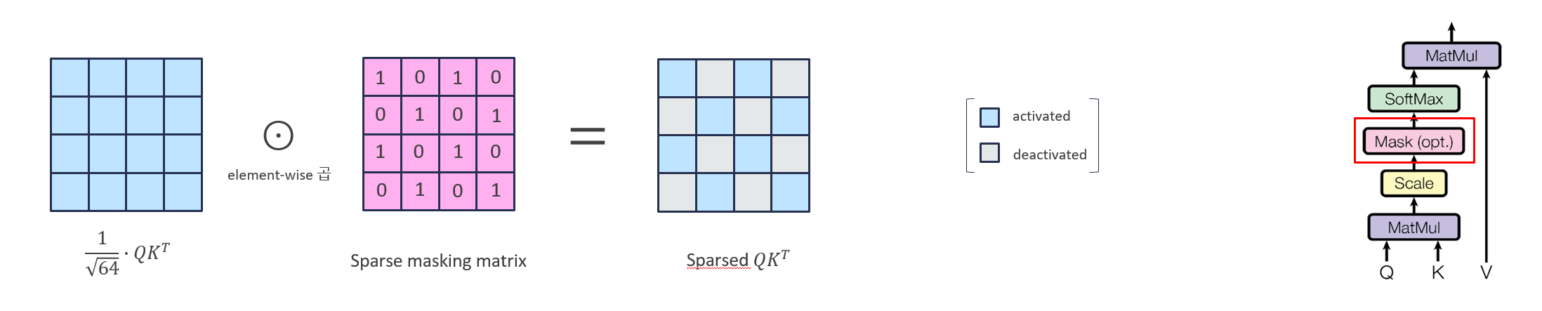 이렇게 만들어진 어텐션 스코어는 masking matrix와의 element-wise 곱을 거칩니다. masking layer를 거칠지 말지는 선택이나, masking layer 도입을 통해 파라미터를 줄이기도 합니다.
