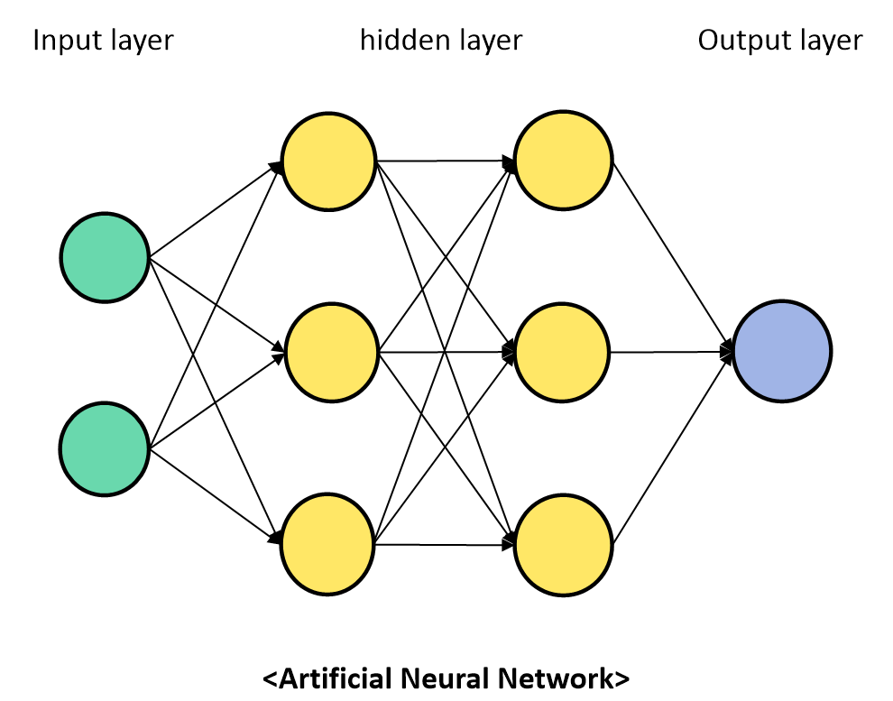 이전 포스팅에서 인공지능이 어떻게 구현되는지를 설명했었는데, 그 계산 과정을 이러한 인공신경망으로 도식화 할 수 있다.