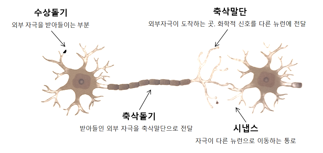 위 사진을 통해 사람의 뉴런이 신호를 전달하는 법을 알아보자.