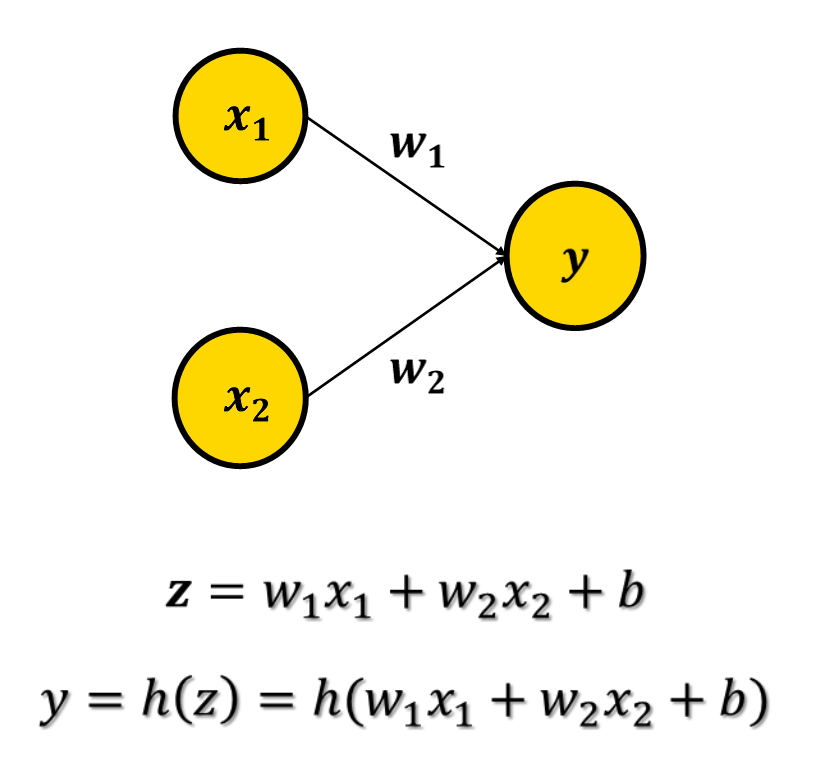 후에 h(z)라는 활성 함수를 거쳐 최종 output인 y가 산출된다.(출력값은 모델에 따라 다른 뉴런의 인풋으로 들어가게 되기도 한다.)